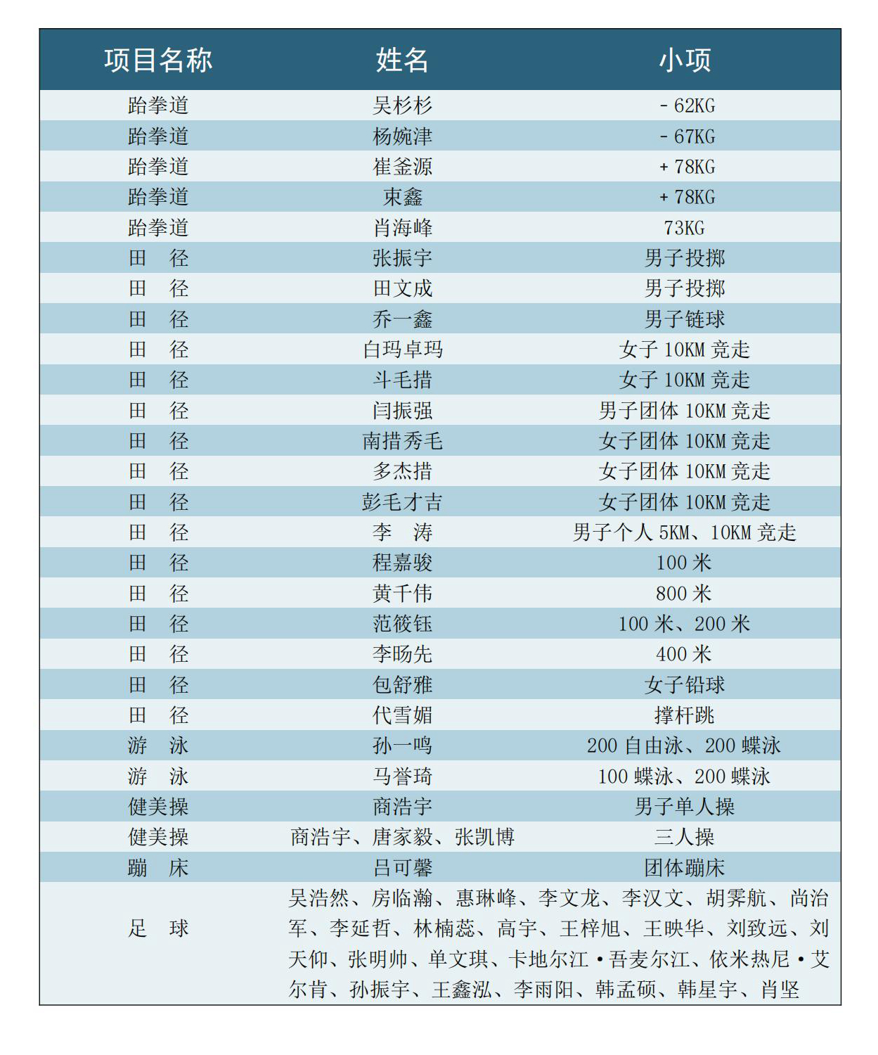 本届学青会,我校共派出57名学生参加跆拳道、田径、游泳、足球、健美操等5个大项的角逐,同时还有8名老师将担任随队教练员,11位老师担任篮球、排球、足球、游泳、乒乓球、健美操、啦啦操等项目的技术官员和裁判员。
