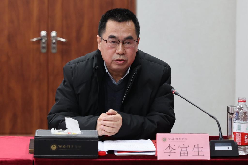 本网讯 11月14日,鄠邑区委领导班子与我校党委领导班子成员汇聚在我校鄠邑校区手球馆,就科技成果转化助力区域经济发展和鄠邑校区二期项目建设推进工作进行深入交流探讨。鄠邑区委书记李化,副区长郑伟、吴宁超,我校党委书记刘子实、校长李富生、副校长谢英出席座谈会。会议由李富生主持。