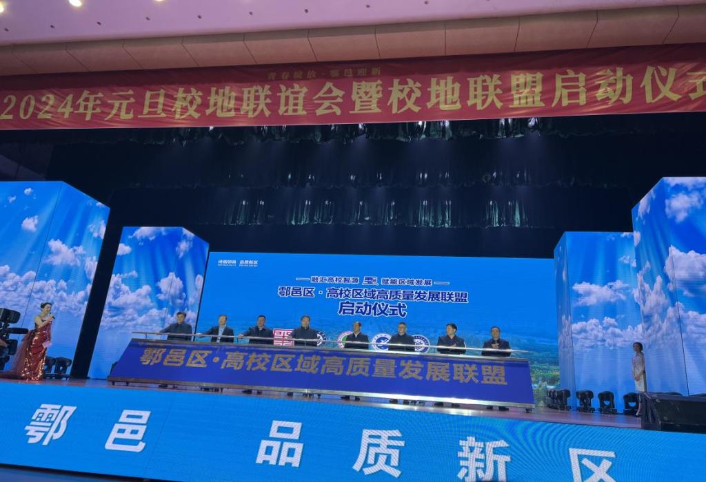 本网讯 龙腾霄汉开金运,鹊立枝头报好音。为充分发挥驻鄠高校资源优势,丰富校地合作新内容,谱写校地合作新篇章,2024年1月2日,鄠邑区人民政府邀请我校及驻鄠高校共同举办“青春绽放·鄠邑迎新”2024年元旦校地联谊会暨校地联盟启动仪式。我校校长李富生出席,党校办、鄠邑校区管委会、校团委负责人陪同参加。