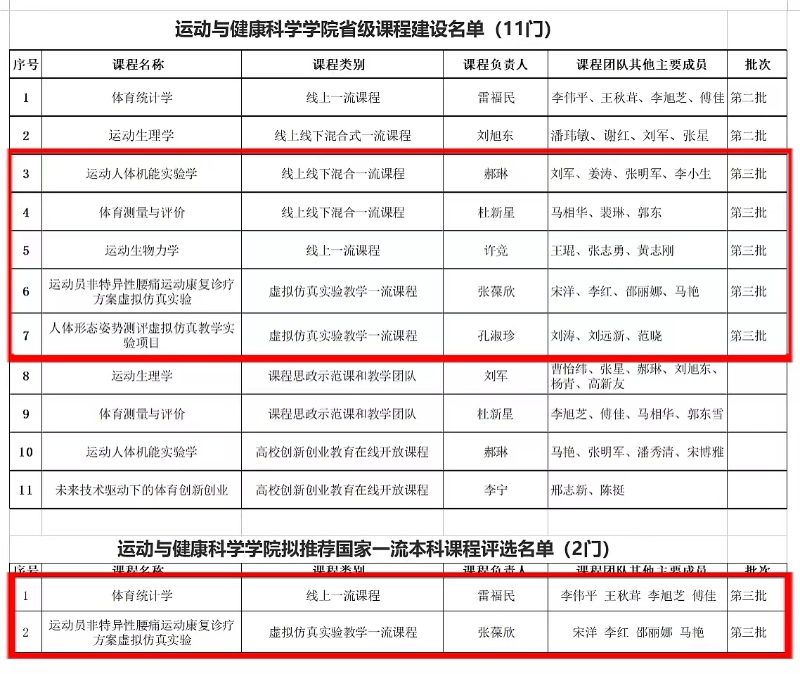 本网讯 近日,陕西省教育厅公布了第三批省级一流课程和推荐参加国家级一流课程评选的名单。我校运动与健康科学学院有5门课程获得省一流课程认定,2门课程被推荐参加国家级一流课程评选。至此,运动与健康科学学院共有11门省级课程。