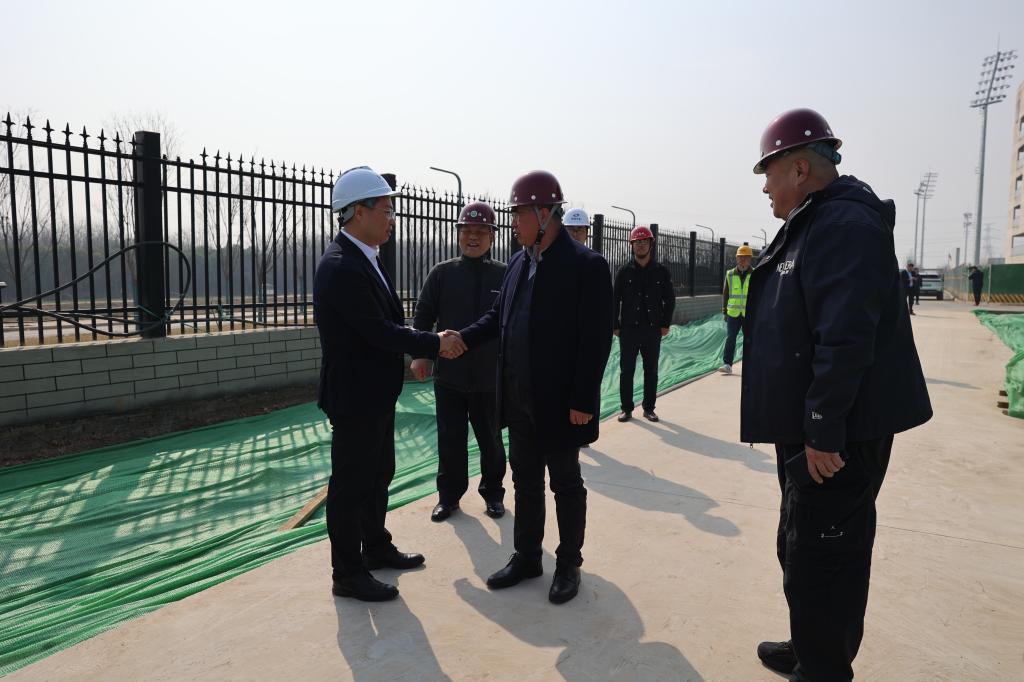 在施工现场,汪国栋实地查看了项目建设进度,并听取项目负责人的情况汇报,对我校即将主体搬迁、全面落户鄠邑区表示热烈欢迎,对我校在建设中面临的难点、堵点问题在现场逐一安排落实,表示将一如既往地全力支持我校新校区建设,始终以高标准、高质量为管理核心,为我校校区搬迁做好服务和保障工作。
