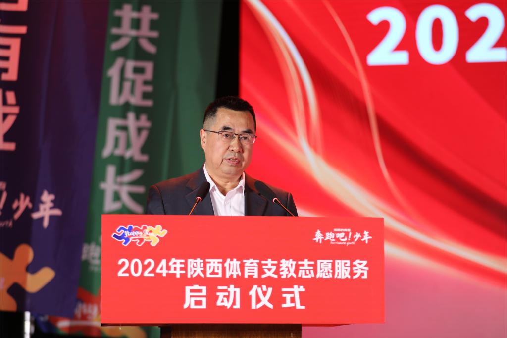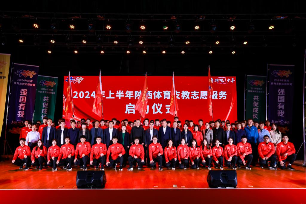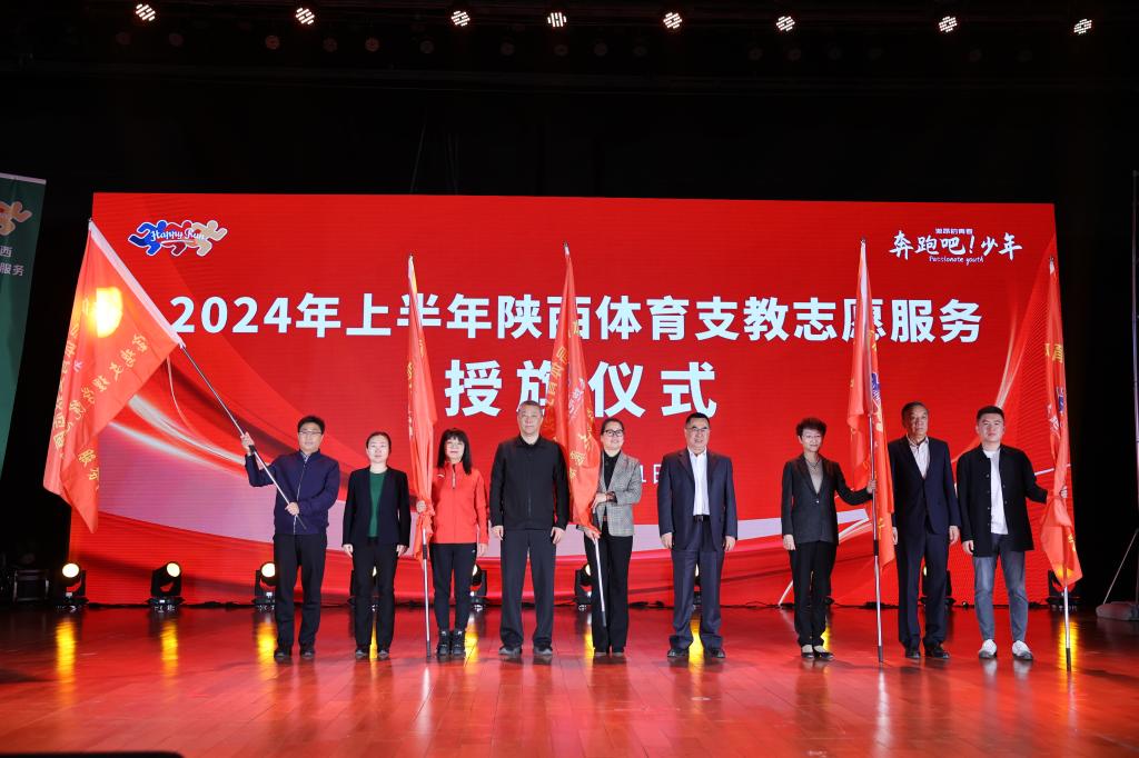 本网讯 3月31日上午,2024年陕西省体育支教志愿服务启动仪式在我校艺术馆大礼堂举行。省体育局副局长邹军,省教育团工委书记王继霞,我校校长李富生,省体育局二级巡视员、青少年体育处处长苏晓刚出席并共同为体育支教志愿服务队授旗。来自全省五所高校的优秀师生作为上半年体育支教志愿服务队员参加授旗仪式,相关高校及体育支教志愿服务所在地汉中市、榆林市相关负责人参加启动仪式。