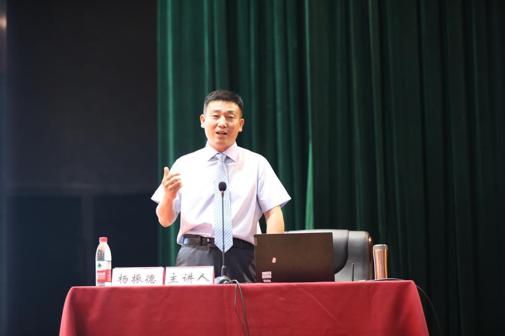 杨振德校友围绕“在大山仰望星空,坚定梦想”“路虽远行则将至,坚定方向”“事复一事必不怠,保持热爱”“心之所向至则真,奔赴远方”“道心可追久久功,吾性自足”,从求学、求知、求事、求真、求心五个维度分享了个人成长经历,回顾了自己从热爱体育、进入西体到躬耕体育教育事业的历程。“读万卷书不如行万里路,行万里路不如阅人无数,阅人无数不如高人指路,高人指路不如自己领悟。”他为师生分享了自己宝贵的人生经验,讲述了为学生“指方向、铺路子、搭梯子、建台子”生动事例。他在寄语师弟师妹时指出,体育人拥有前所未有的发展机遇,希望同学们牢记体育人的光荣使命,珍惜学习机会,学会做人做事,精进专业技能,增强实践能力,养成终身学习、终身完善、终身发展的良好习惯,要当“顽强拼搏、攻坚克难”的奋楫者,以不懈奋斗书写人生篇章;要当“务实肯干、锐意进取”的开拓者,以实干担当行稳为民之路;要当“不计得失、忘我付出”的奉献者,以奉献精神展现青春风采。报告会中间还穿插了许多互动环节,现场气氛热烈,掌声不断。