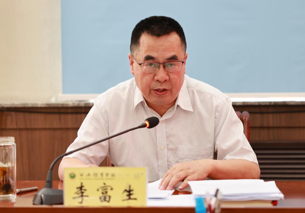 李富生指出,要深入贯彻落实《中华人民共和国学位法》有关要求,一要提高站位,高度重视学位工作。要深刻领会人才是第一资源的重要论述,肩负起学校为党育人、为国育才的神圣职责。积极学习贯彻新修订《学位法》,深刻理解学位制度设计,把握其精神内涵,修订完善我校学位相关管理文件,做好宣讲和贯彻落实工作,推动依法治教和学位法治建设,规范学校学位授予工作,保障学位授予质量。二要严格把关,全面提升培养质量。人才培养是学校的核心工作,人才培养质量是学校发展的生命线。学校要始终把提升教育教学水平和人才培养质量作为首要任务,不断加强人才培养全链条质量关,将质量提升前置到培养全过程。三要严明标准规范过程管理。要及时发现和整改教育教学质量监测、教学秩序保障、学生管理、学位管理、学业考核过程管理等教风学风考风领域的关键问题,堵塞管理漏洞,抓规范、抓质量,夯实教育教学工作中心地位。要进一步加强学籍学位管理工作,将学位论文质量监督、把关审查等工作不折不扣落实到位,细化学位申请、论文答辩等各环节,确保学位授予质量。研究生部、各二级学院要以高度负责的精神,严密组织,严格把关,高质量推进学位授予工作,推动学校硕士、本科教育教学高质量发展。