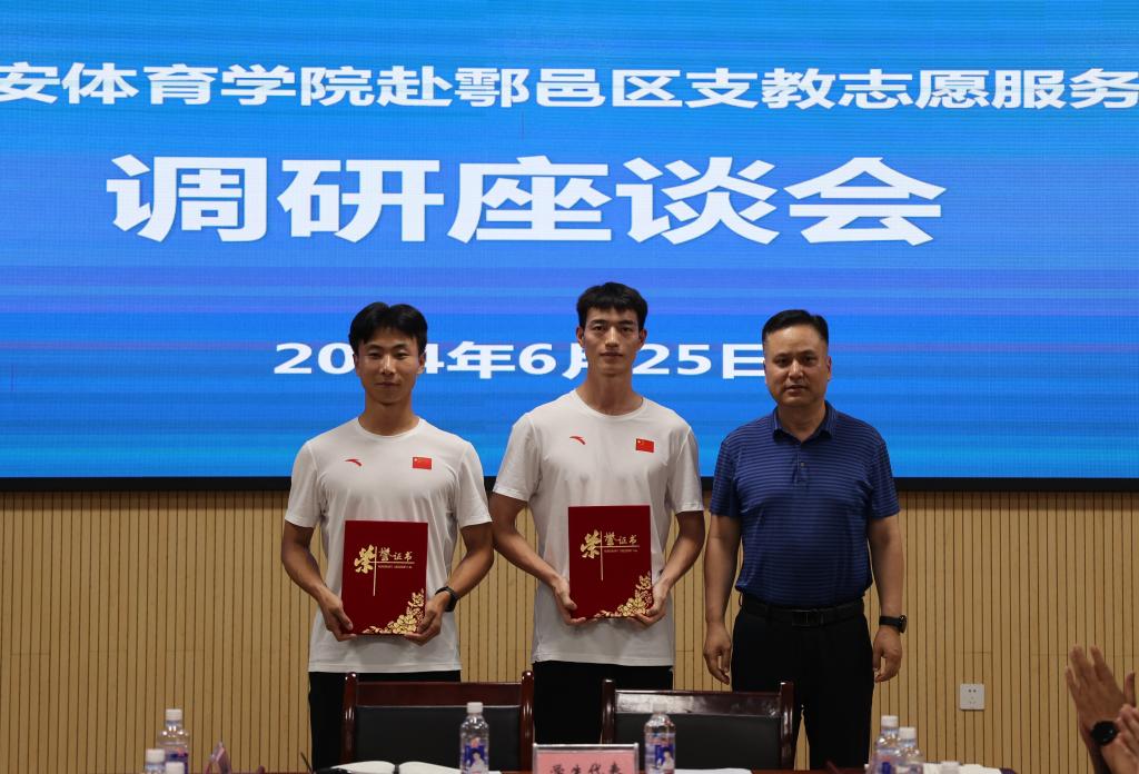 郑伟介绍了鄠邑区基础教育整体布局,他指出,城市因大学而兴,大学因城市而盛。西体主体落户鄠邑,将会给鄠邑区的发展带来巨大的活力。鄠邑区也将全力支持学校发展,此次支教就是校地携手共进的良好举措,不仅让学生在实践中增长了知识、锻炼了才干,也极大缓解了基层体育教师短缺的现状,为基层教育尤其是乡镇学校带去了先进的教学理念和教学方法。他希望支教队员们能够坚持梦想,实现人生目标;学以致用,助力鄠邑教育发展;体教融合,打造区域品牌特色,为提升区域体育教育水平做出更大贡献。