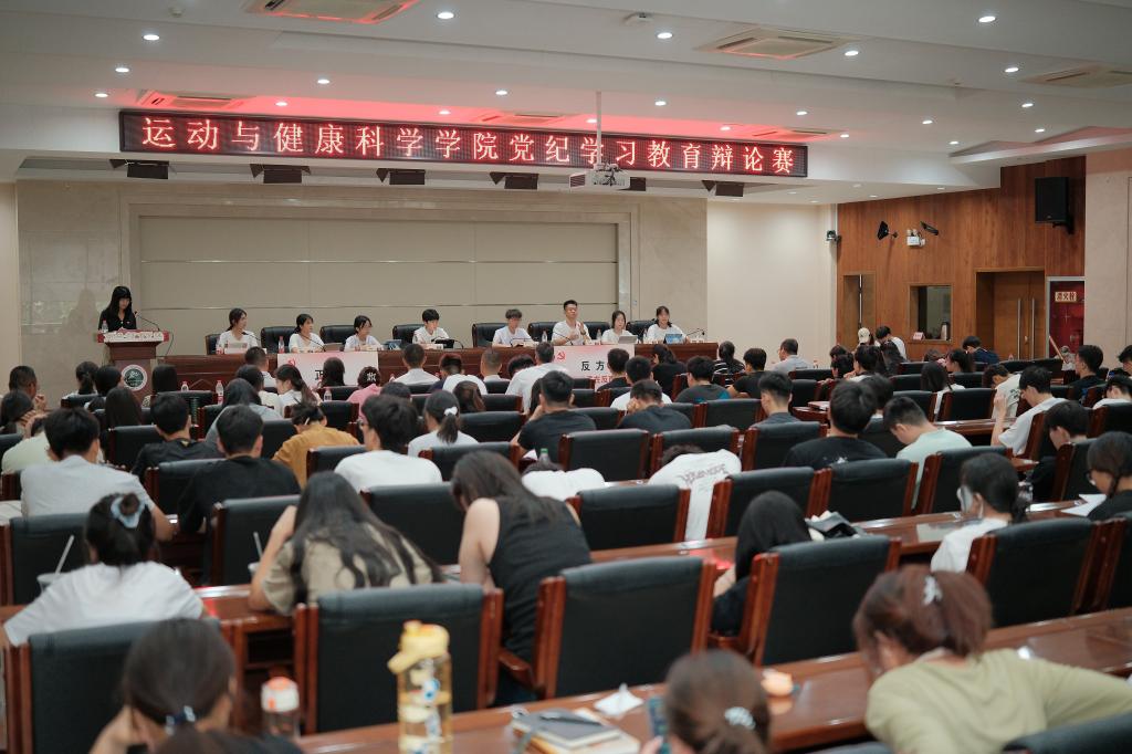 运动与健康科学学院于6月28日下午举行了以“党纪学习教育重在正面引导还是反面警示”为题的辩论赛。党委副书记、纪委书记、监察专员杨芳乾,组织部副部长李志杰、马克思主义学院院长张彩虹、学工部副部长郭维刚、团委副书记黄宏叶以及运动与健康科学学院党政领导班子、各教研室主任、支部书记到场聆听。辩论赛由学工办主任苏菲主持。