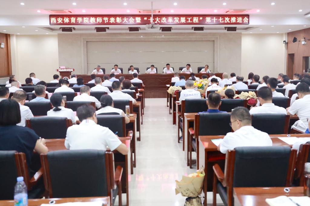 本网讯 9月9日下午,我校在含光校区召开第40个教师节表彰大会暨“十大改革发展工程”第十七次推进会。全体校领导出席,各类受表彰教职工、2024年新入职教师、副处级以上干部参加。校长李富生主持会议。