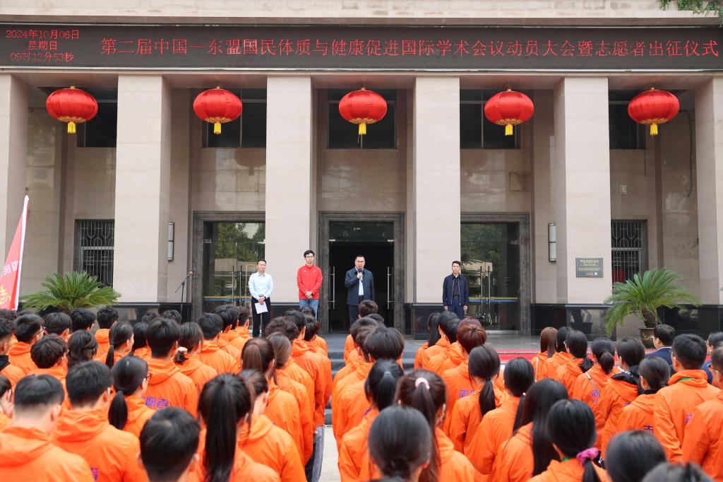 本网讯 10月6日上午,我校召开第二届中国—东盟国民体质与健康促进国际学术会议动员大会暨志愿者出征仪式,校长李富生、国民体质与科学健身研究中心副主任冯强出席,我校党委副书记马海涛主持仪式。