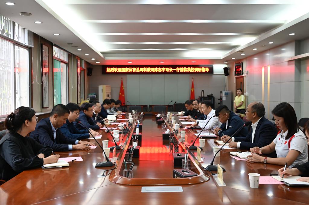 陈志宇司长对我校人才培养、服务体育事业发展等方面的工作给予了充分肯定,希望我校在原有的基础上持续深化体教融合、高水平科研服务,结合国家需求创新发展模式,推动科技创新与体育融合,聚焦科技创新赋能奥运竞技,不断推进我国体育事业高质量发展。