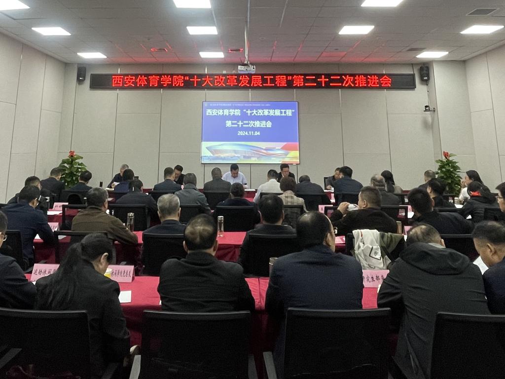 李富生在讲话中指出,本次会议是党政部门主体搬迁后在鄠邑校区召开的第一次推进会,也是工作再动员会和冲刺会,目的就是确保“十大改革发展工程”未完成工作落实到位,做到善始善终、善作善成。下一步要做好“十个继续”,一是继续以超前的思维推进规划建设工程,全力加快综合训练馆、人防工程、过街天桥、北门建设,加快完成鄠邑主校区建设规划调整和已建成工程移交使用,按照要求完成含光校区消防整改和危房改造,积极争取项目建设资金。二是继续以担当的勇气推进创收造血工程,全力完成年度创收任务。提升培训造血能力和水平,加大欠款、欠费、租金催缴力度,争取更多项目资金、赛事经费、捐赠捐款、有关债券等。三是继续以奋进的基调推进崛起辉煌工程,全力补齐短板。完成建校70周年系列活动,做好校友和基金会工作,提前筹划2025年国际交流工作,强化大学文化建设,学习借鉴兄弟院校办学经验。四是继续以严实的态度推进作风建设工程,全力实现“十种风气”根本好转。持续加强校风教风学风建设和作风整顿,弘扬鄠建作风,开展“鏖战之星”第5次评选和争做“十种人”活动等。五是继续以改革的精神推进训练提升工程,健全竞训处、竞校、二级学院“三位一体”办高水平运动队的竞技体育人才培养模式。加大项目布局改革,扩大省队校办项目,积极争取国家队校办和国家级赛事、有关学院落户,全力加强国家示范足球学院建设,继续办好中国竞走学院,全力备战“十五运会”。六是继续以创新的思路推进人事改革工程,全力做好人事改革重点工作。要把人事制度改革作为一项撬动学校高质量发展的“破冰工程”,认真做好“三定”方案、高层次人才引育、教职工在职攻读博士管理、职称评审、考核评价、绩效分配、编制外人员分类聘用管理等。七是继续以务实的作风推进教学改革工程,全力做好本轮本科教育教学审核评估工作,推进本科强校工作。落实立德树人根本任务,健全“三全育人”体制机制,完善教学质量评价体系,加大一流专业、课程和教学成果奖、优秀教材奖培育力度等。八是继续以高度的责任感推进学科建设工程,全力推进新一轮学科评估和博士点增列工作。紧扣建设目标,盯紧关键核心指标,聚焦高质量成果、师生比、博士比、经费、带头人等短板弱项踏踏实实逐一整改提升。九是继续以进取的精神推进科研改革工程,全力提高高水平项目申报立项工作。制定完善有关制度,强化有组织科研,集成攻关,建大平台,拿大项目,获大成果。十是继续以发展的眼光推进保障提升工程,全力推进管理强校工作。加强内部治理,提高管理质效;做好安全生产,维护校园稳定;注重民生工作,改善师生办公学习住房条件。