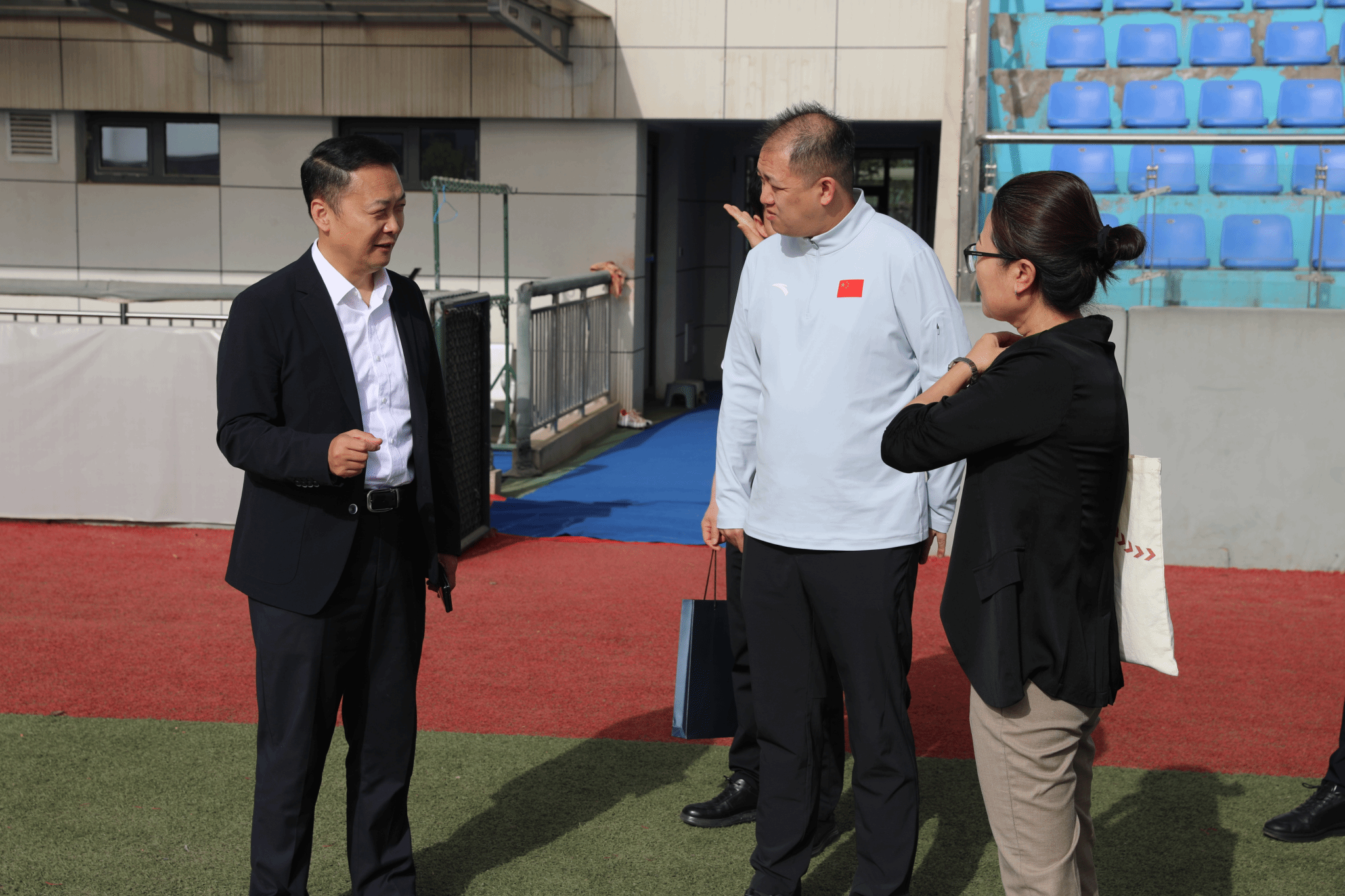 周正一行实地参观了鄠邑校区教学综合楼、学生公寓楼和手球馆在内的“一馆四场”等场馆基础设施。学工部、教务处、研究生部、体育教育学院、运动训练学院、艺术学院、运动与健康科学学院相关部门负责人参加调研。