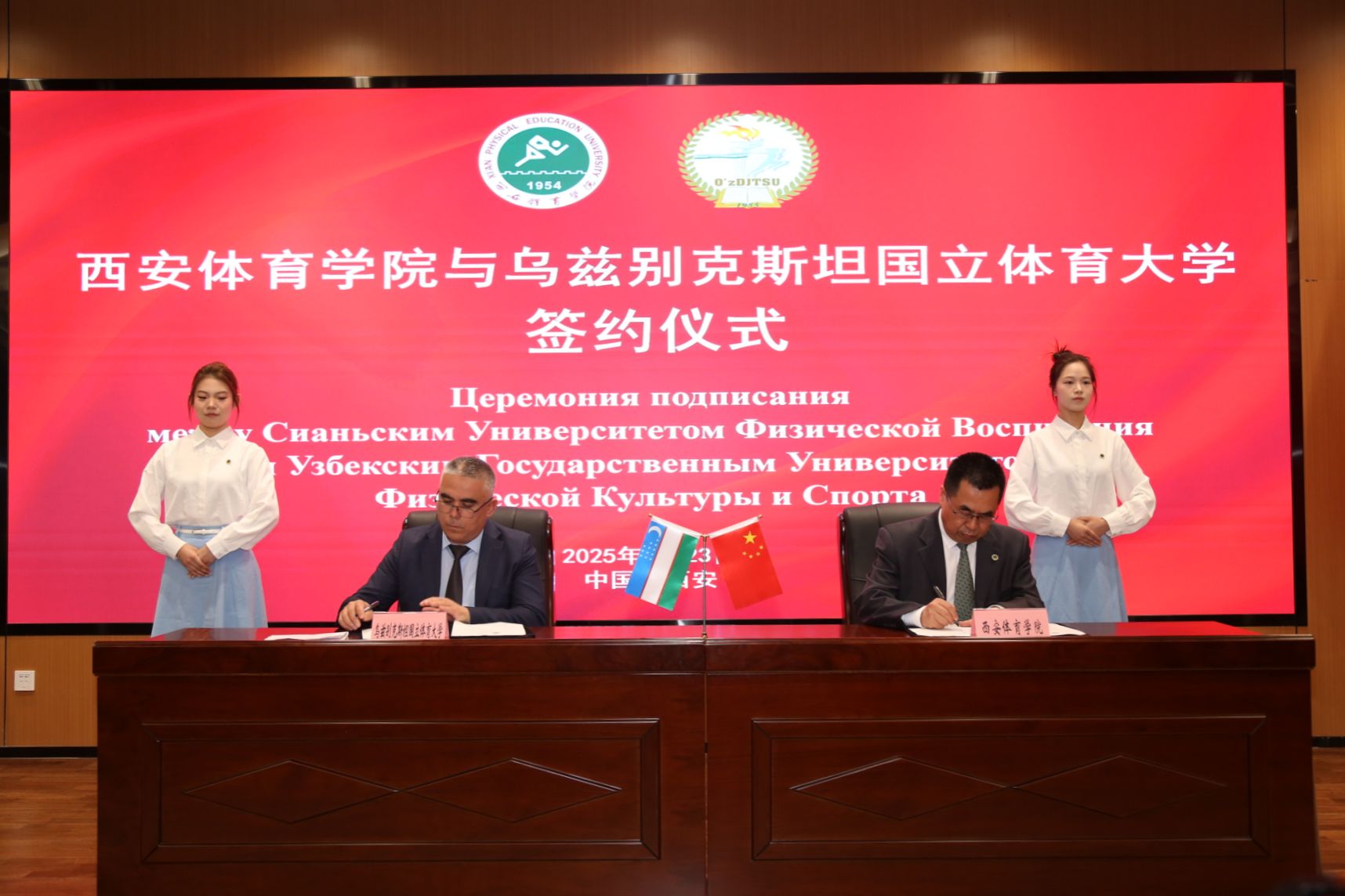 李富生与马特卡里莫夫・拉希德・马沙里波维奇共同签署了合作备忘录。未来双方将在学生交换、师资交流、联合科研、赛事合作等多个领域展开务实合作,为两校师生搭建更为广阔的国际交流平台,同时也为两校在体育领域的协同发展奠定坚实基础。