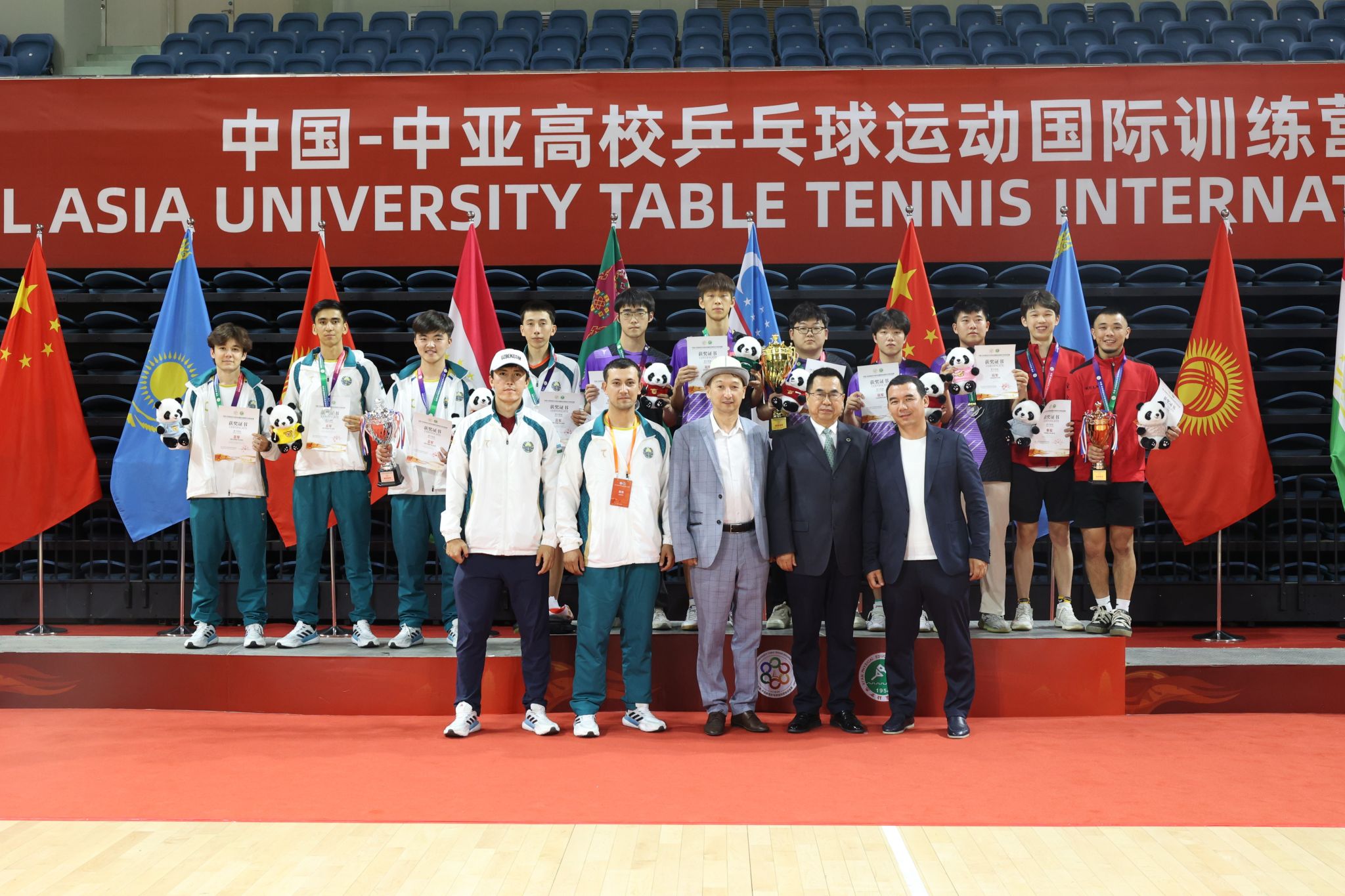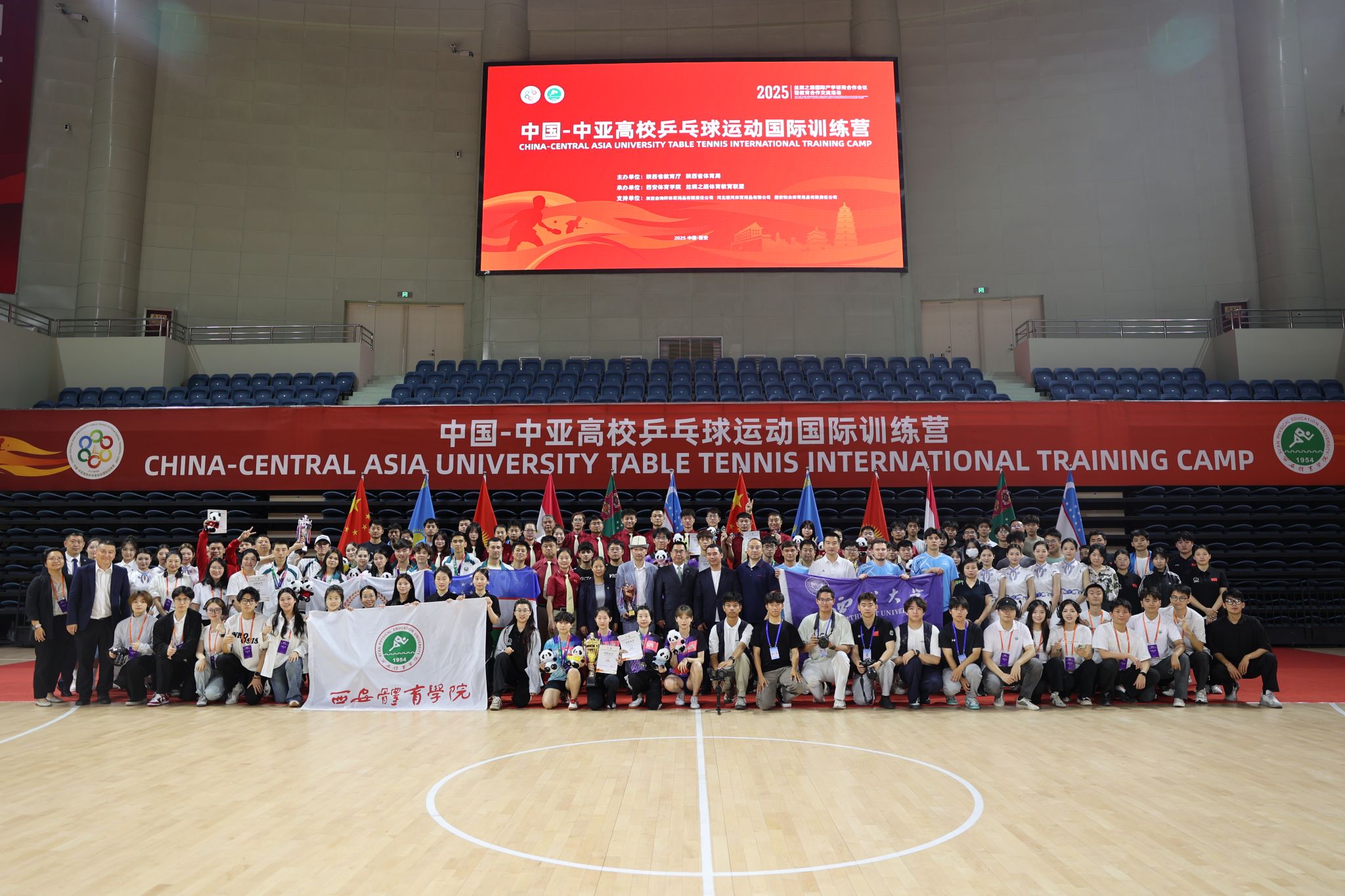 本网讯 5月25日下午,为期两天的“中国-中亚高校乒乓球运动国际训练营”在我校鄠邑校区圆满落幕。来自乌兹别克斯坦、吉尔吉斯斯坦、土库曼斯坦等中亚国家高校及西安体育学院、西北大学、西安石油大学等中国高校的32名青年运动员,通过技术交流赛、理论研讨和文化体验等环节,深化了体育合作与人文交流,为“一带一路”倡议下的青年交流注入新活力。