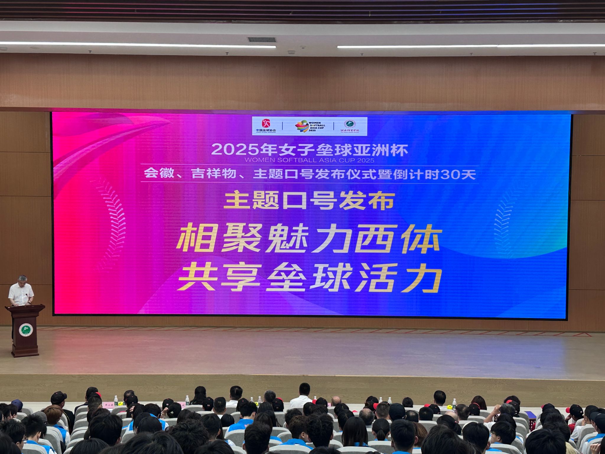 本网讯    6月14日上午,备受瞩目的2025年女子垒球亚洲杯会徽、吉祥物、主题口号发布仪式暨倒计时30天筹备工作誓师动员大会在西安体育学院鄠邑校区举行。中国垒球协会秘书长郑璐,陕西省体育局二级巡视员可宗革,西安市体育局副局长张炜,鄠邑区委常委、宣传部部长王值,鄠邑区副区长吴宁超,陕西省手曲棒垒中心副主任刘剑,西安体育学院校长李富生,副校长谢英、张葆欣、毕德鹏、雷振华出席大会,亚洲杯组委会工作人员及志愿者、女垒运动员、教练员等共同见证这一重要时刻。大会由张葆欣主持。