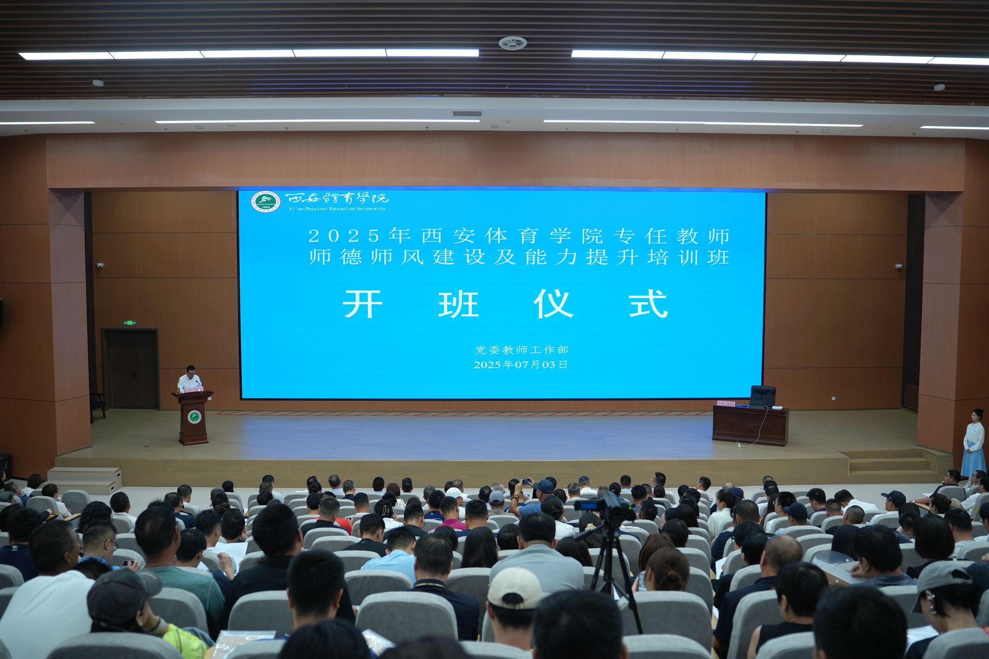此次培训班是我校持续推进师德师风建设工作、落实新时代高素质专业化教师队伍建设目标的关键举措,标志着学校教师队伍建设工作进入系统推进、纵深发力的阶段。为期两天的培训将围绕教育家精神领学导读、数字赋能教学创新、警示教育案例教学、体育教师能力模型构建等内容,开展一系列理论讲座与实践研修,进一步凝聚思想共识、强化师德引领、提升业务能力,为推动学校高质量发展注入强劲动能。