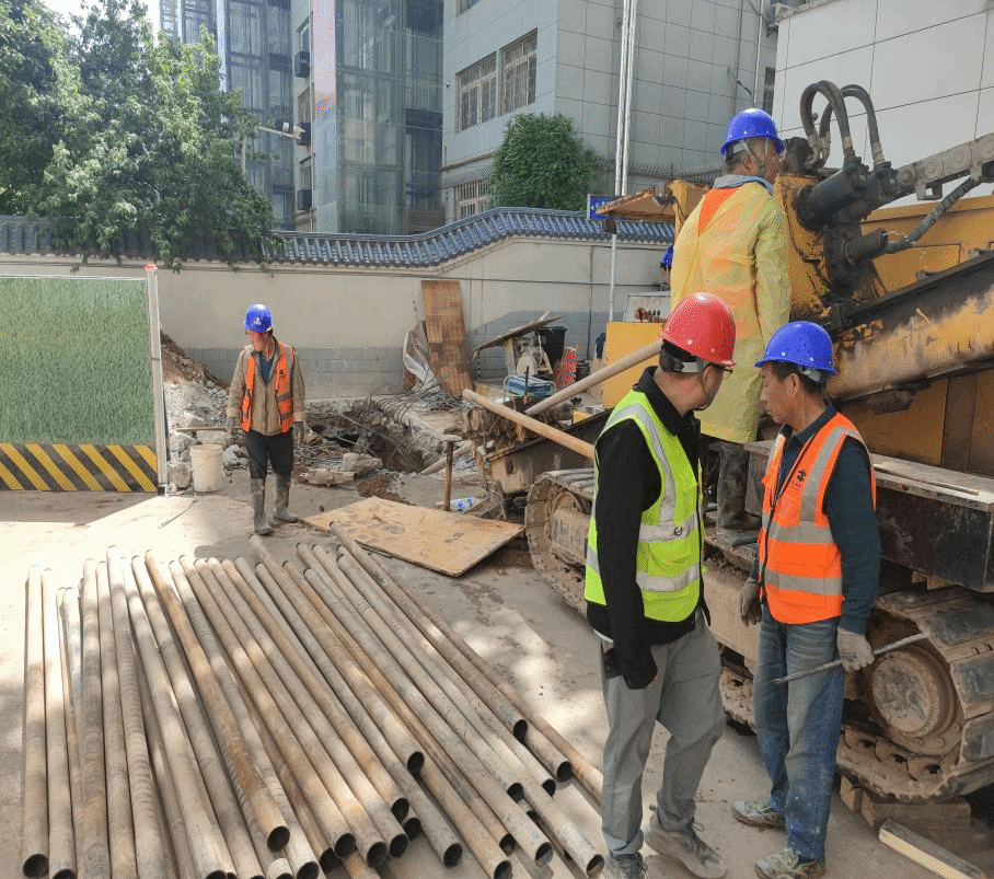 施工现场与60多年前图纸差异大,设计院先后到场8次,面临老旧建筑空间狭窄、管线复杂,还要减少对路面绿化破坏、兼顾教学生活等难题,有的建筑功能变动大,有的建筑消防设施要从头改,基建处要求施工单位采用顶管工程施工铺设地下管线,通过模块化施工方式克服空间狭小、管线复杂的难题问题,通过错峰作业、围挡覆盖等实现加速工期、减少影响。