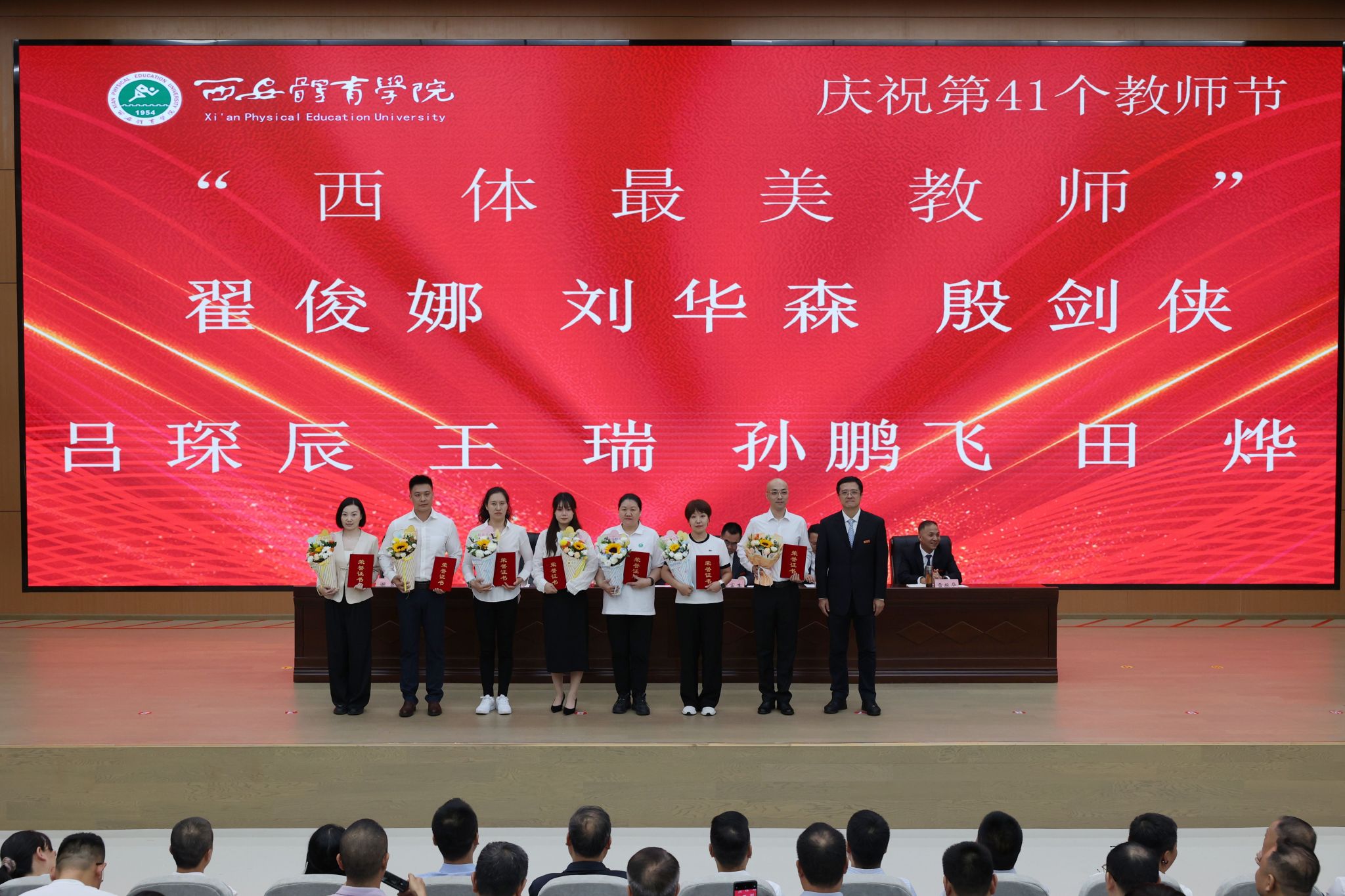 校长李富生指出,教师是学校发展的第一资源,此次表彰既是对广大教师辛勤付出的充分肯定,也是弘扬尊师重教优良传统的具体体现。近两年,学校制定实施“三年行动计划”,创新开展“三大战役”,办学理念日益清晰,硬件条件显著改善,综合改革全面推进,教学科研、竞赛训练、人才培养质量、文化影响力等方面持续突破,已加速迈入全国体育院校第一方阵。广大教师要坚定理想信念,涵养教育情怀,强化责任担当,争做“有情怀、有境界、有水平”的新时代大先生;要持续提升教书育人、科研创新与服务社会的能力,把个人奋斗融入学校发展与国家战略之中,以奋斗姿态接续发力、砥砺前行,为实现西体美好明天贡献智慧和力量。