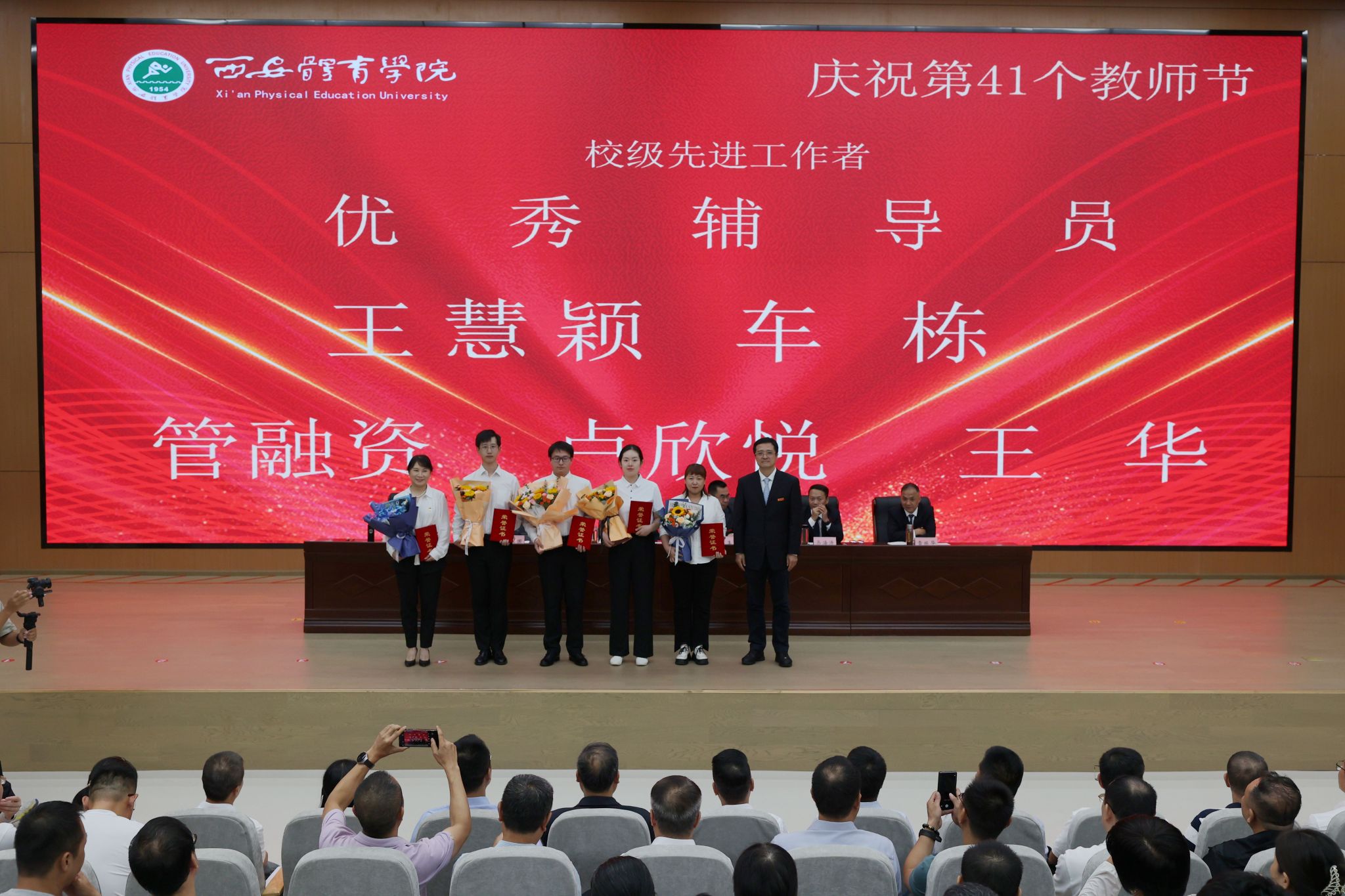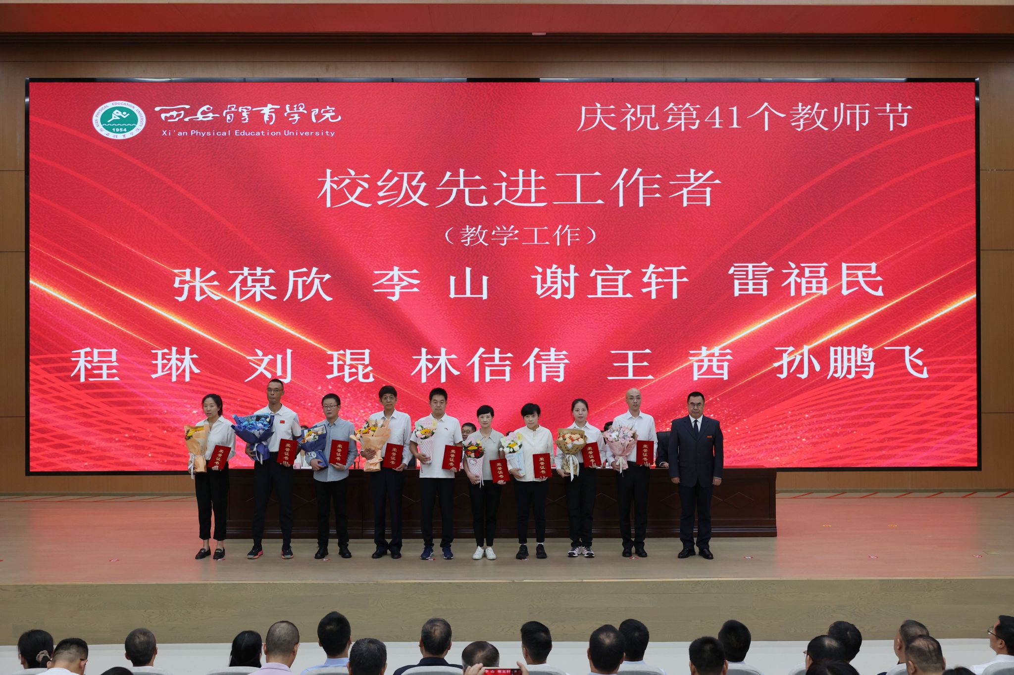 本网讯    金秋九月,丹桂飘香。在第41个教师节来临之际,9月10日,我校在鄠邑校区举行庆祝第41个教师节暨2025年教师表彰大会。校领导、受表彰教职工、教师代表及副处级以上干部齐聚一堂,共话初心使命,共襄育人荣光。