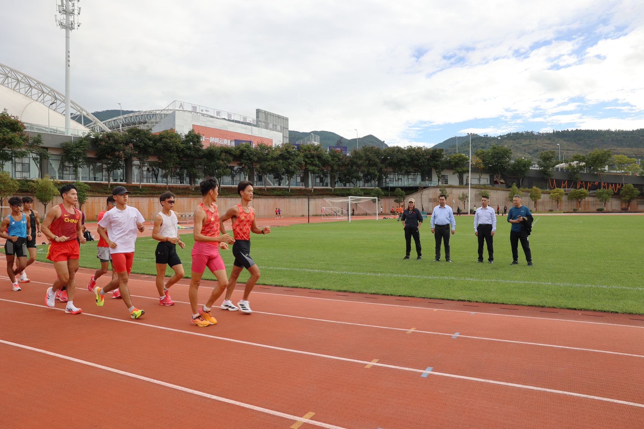 本网讯 10月17日,校长李富生率队赴云南玉溪训练基地,看望慰问正在紧张备战第十五届全国运动会的竞走队全体成员,通过实地观摩训练、听取专项汇报、开展座谈交流等方式,为队伍加油鼓劲并提出备战要求。党委(校长)办公室、竞训处负责人一同调研慰问。