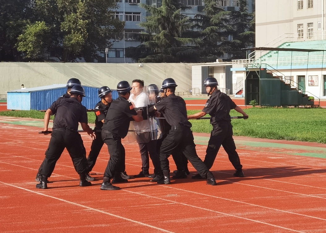 此次应急演练中,保卫处工作人员对火灾的预防、扑救及逃生措施等消防知识作了详尽的讲解,还就校园安全工作的重要性以及反恐防暴安全知识等方面对全体参演人员进行了培训。在消防演练环节中,安保人员分别对微型消防站的防火面具、消防器材的使用进行了现场展示。反恐防暴应急处突演练环节中,安保人员分工明确、配合默契、操作规范、示范到位,多种防暴器材在安保人员手中运用娴熟,演练效果明显。