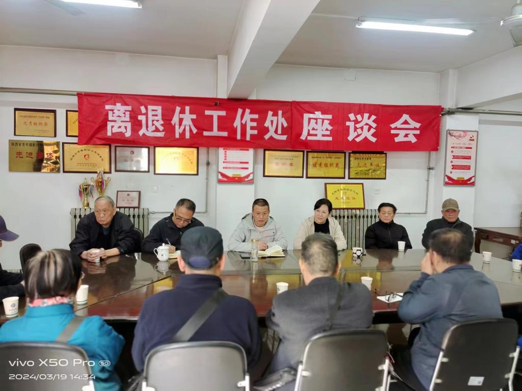 本网讯 3月19日下午,离退处工作处在第一活动室召开2024年离退休教职工座谈会,离退休工作处处长朱舰、副处长李倩、离退休教职工代表14人、离退休处办公室工作人员参加了本次座谈会,会议由朱舰主持。