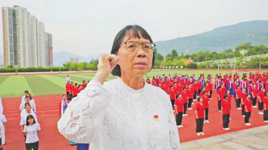 今年6月底,张桂梅以一名优秀人民教师的身份获得了党内最高荣誉“七一勋章”。殊荣加身,回到学校的张桂梅却一如往常。早晨5点,张桂梅便拿着喇叭在楼道口叫学生们起床,白天在管理学校之余,她还得抽出时间去看望儿童福利院的孩子们,晚上又回到学校陪着女高的学生自习到深夜。身体力行着她“倾尽全力、奉献所有、九死亦无悔”的誓言。