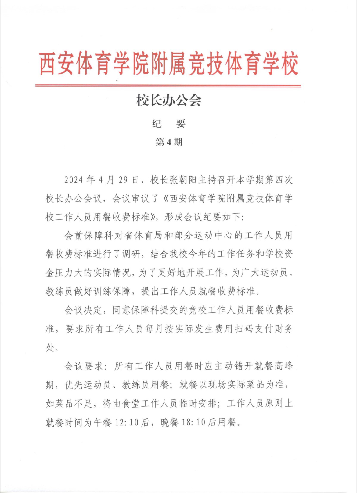 校长办公会 会议纪要(第四期)