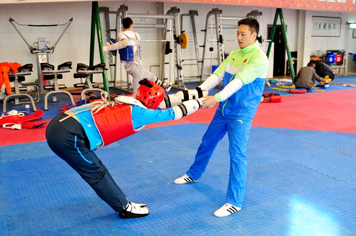 本网讯 为了帮助国家跆拳道队队员更好的开展国际大赛备战工作,在非国家队集训期间保持良好的竞技状态和训练强度,中国国家跆拳道队外籍教练金教植受国家体育总局拳跆中心委托于近期来到我院拳跆中心跆拳道队,为国家女子跆拳道队大级别重点运动员李东华做短期专项训练指导。