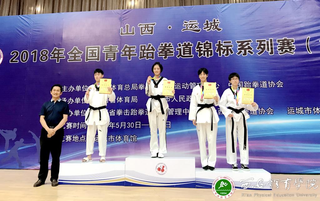 本网讯2018年全国青年跆拳道锦标系列赛(第二站)6月1日在山西省运城市体育馆落下帷幕,我院与省拳跆中心7名运动员共获得1金2铜4个第五的好成绩。