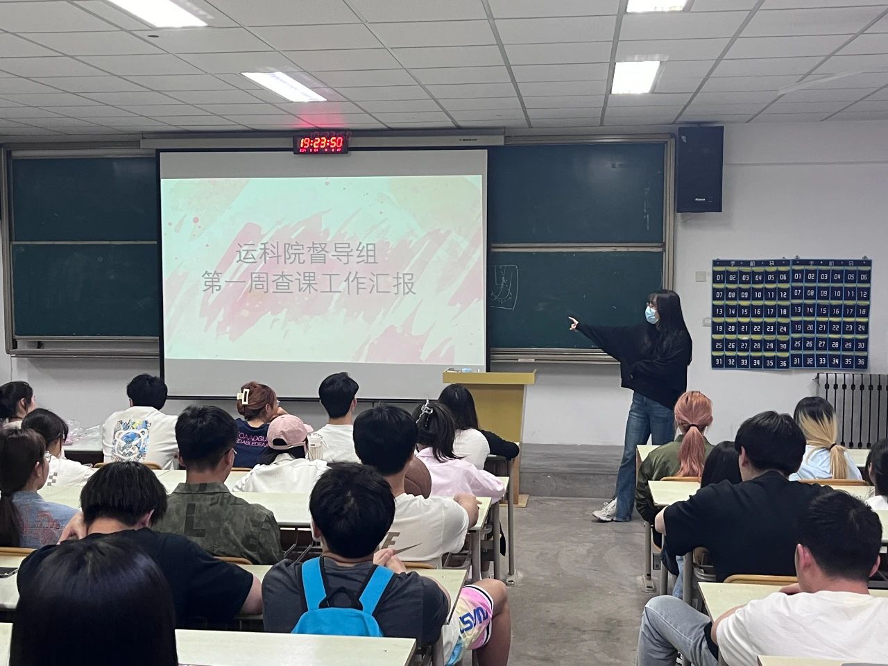 会上,辅导员杨子欣老师针对上一周在督察工作中发现的不良行为进行了批评,再次强调了上课纪律及上课着装等问题。