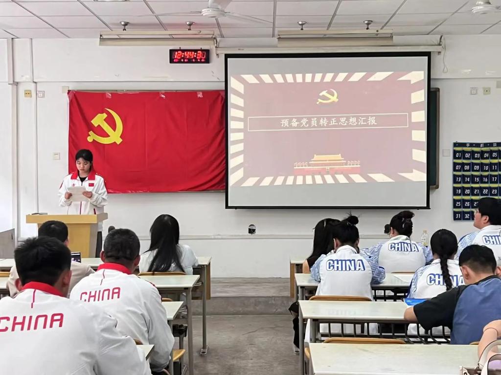 预备党员汇报自己在预备期间的工作学习情况,正式向党支部提出转正申请。他们在汇报过程中,客观评价自身情况,并表示要坚持理论与实践相结合的原则,加强党性修养,努力做好本身工作,尽职尽责服务同学。而后,入党介绍人郝琪同志介绍了预备党员在预备期的表现情况及意见,正式党员对预备党员能否转正展开充分讨论,并进行无记名投票表决。会议认为,申请人态度端正、立场坚定,在工作上认真负责,在生活中乐于助人,同意李紫钰等22位预备党员按期转为正式党员,希望他们能够在实践中改正自己的不足,发挥先锋模范带头作用!
