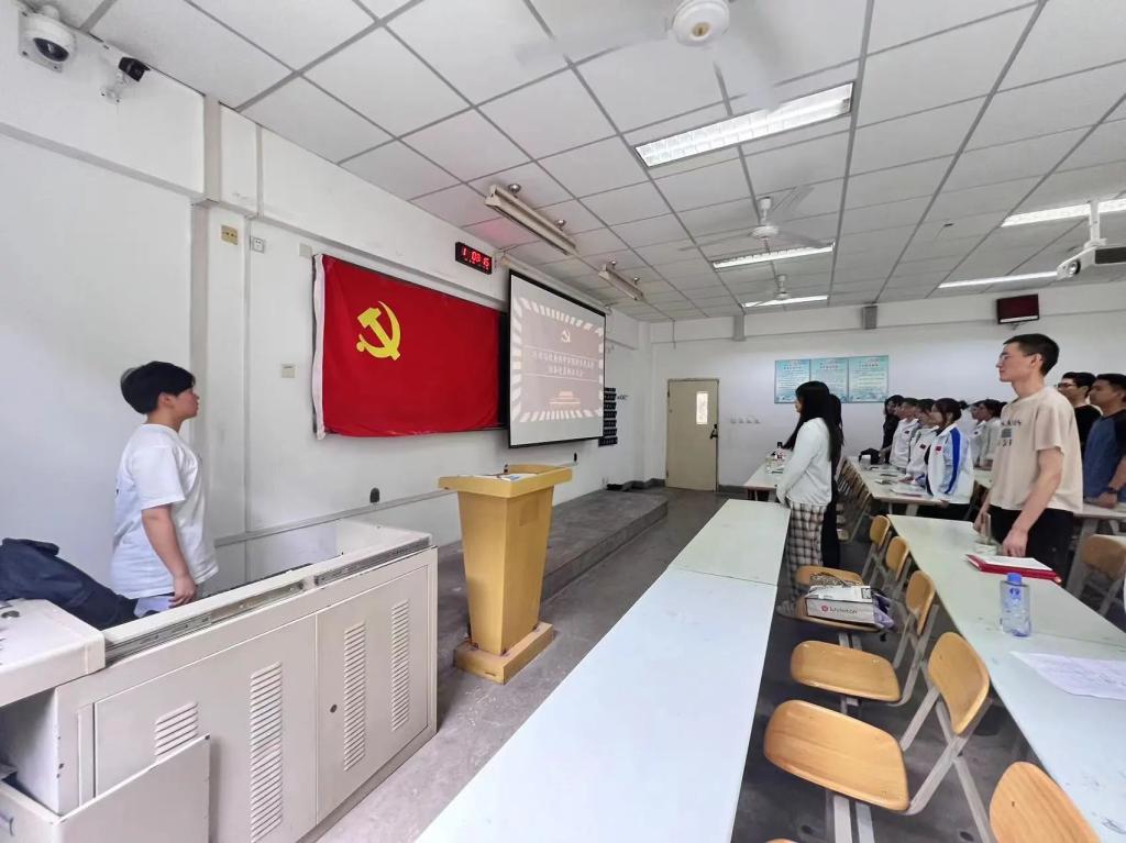 接下来,在我院学生党员屈鑫媛同志的带领下,学生党支部全体同志进行了庄严宣誓:“我志愿加入中国共产党,拥护党的纲领,遵守党的章程,履行党员义务,执行党的决定,严守党的纪律,保守党的秘密,对党忠诚,积极工作,为共产主义奋斗终身,随时准备为党和人民牺牲一切,永不叛党。”慷慨激昂的誓词响彻耳畔,响彻每位同志的忠党爱国之心,这将是贯彻他们一生的郑重承诺。