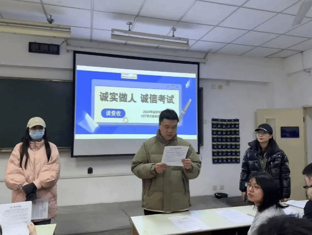 活动伊始,学工办主任苏菲,辅导员杨子欣、杨晨龙以及兼职辅导员陈鑫向同学们阐述了诚信考试的重要性,将相关纪律文件中有关考试管理、学生违纪与作弊的认定及处理,并强调了四六级考试作弊行为的严重后果。