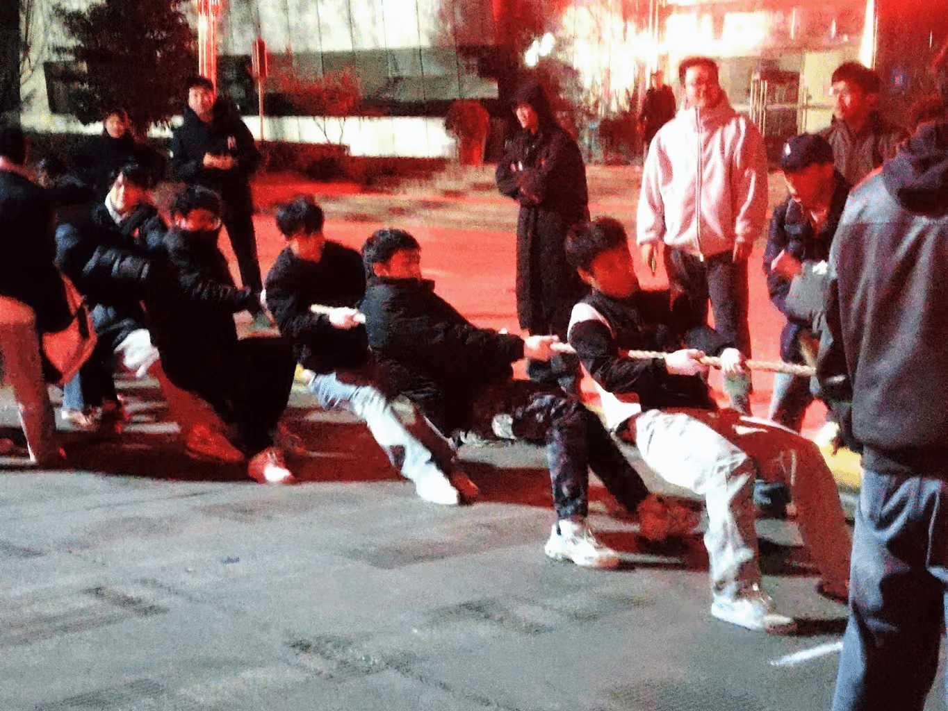 随着比赛的继续,我们于1月3日开展了“拔河友谊赛”。我们可以看到,不仅是学生们,老师们对于比赛也是同等的认真,看他们倾斜的身体,卖力的拉着绳子,身边是加油鼓劲的观众,比赛依旧激烈而精彩。老师与老师之间,老师与同学之间,都透露着集体的努力,众人的配合,在一阵阵呐喊与掌声中化作无穷的动力。