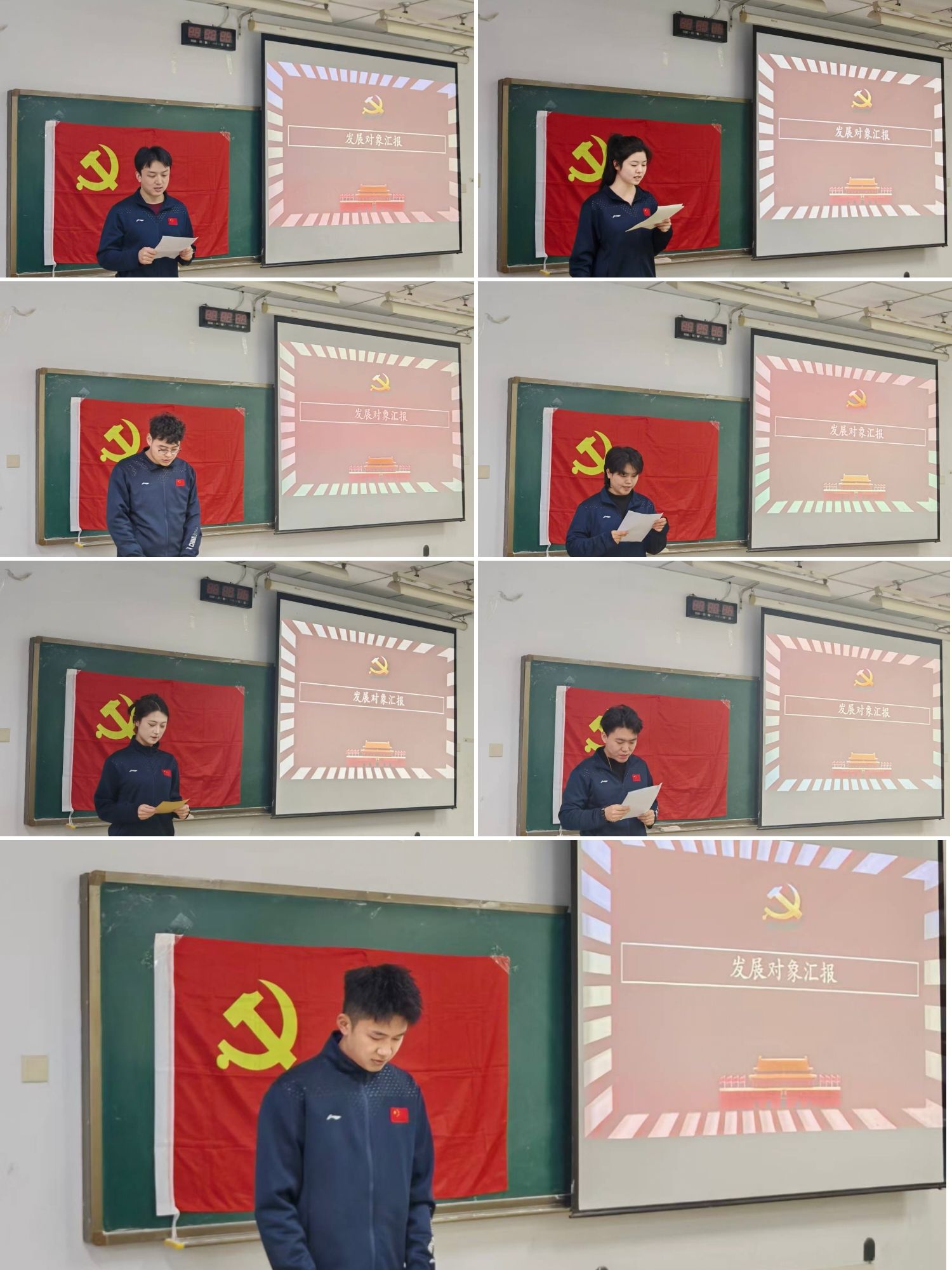 随后,入党介绍人分别结合日常培养考察情况,详细介绍了各发展对象在思想觉悟、学习科研、社会实践、群众基础等方面的表现,客观评价了其成长进步历程,明确表明了同意接收为预备党员的意见,为支部党员全面了解发展对象情况提供了详实参考。党支部书记杨晨龙向大会报告了对发展对象的政治审查情况。