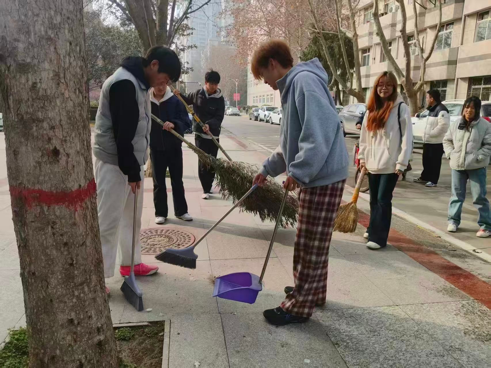 3月5日早上我院学生干部带领组织开展校园公共区域卫生清扫志愿服务活动。活动中,同学们分组协作、分工明确,手持扫帚、垃圾袋等工具,对校园主干道、公园、绿化带及教学楼周边等公共区域进行清洁,重点捡拾纸屑、塑料瓶,清扫落叶与杂物,用行动践行志愿担当 。