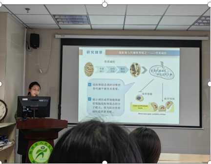 报告会首先由青年教师高静博士后作了“SIRT3介导的线粒体调控在骨代谢及临床骨疾病中的研究进展”汇报,她介绍了线粒体功能障碍与骨质疏松等影响机制。并与省人民医院有关专家在骨质疏松研究方面进行了深入探讨,就后续合作研究提出了初步合作意向。