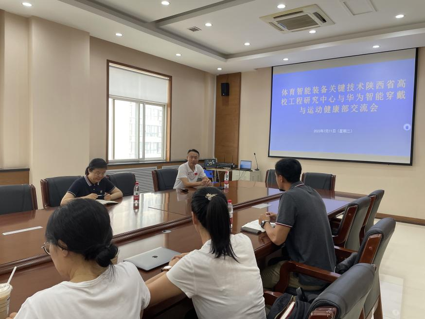 7月11日上午,华为智能穿戴与运动健康部运动项目系统设计工程师傅传斌到我校与体育智能装备关键技术陕西省高校工程研究中心进行座谈交流。运动与健康科学学院院长刘涛、陕西省高校工程研究中心主任潘玮敏及工程研究中心骨干成员共计十余人出席本次交流活动。会议由刘涛主持。