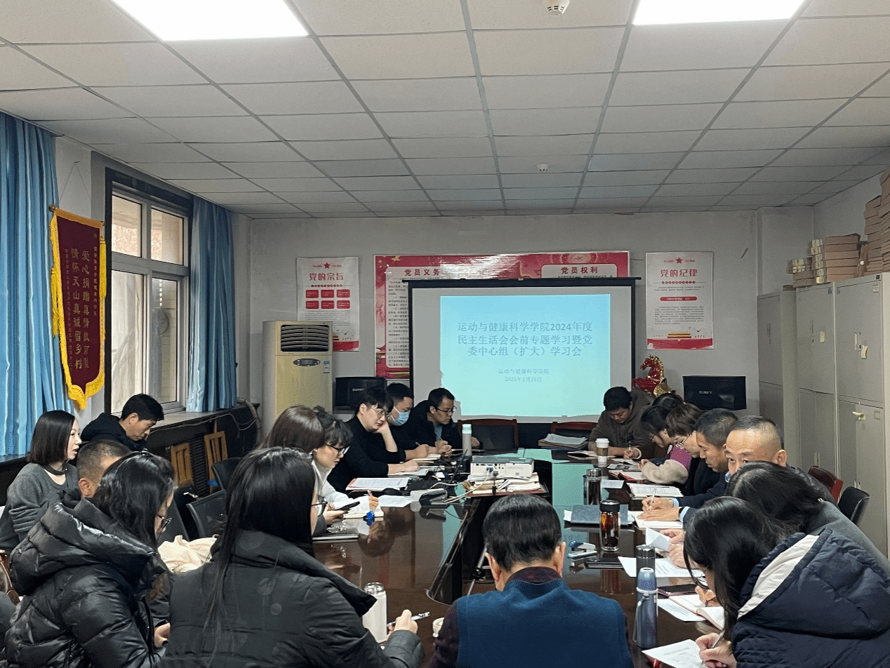 2025年2月21日下午,运动与健康科学学院召开2024年度民主生活会会前专题学习暨党委中心组(扩大)学习会,学院党政领导班子、教研室主任、支部书记、科级以上干部、全体专兼职辅导员参加会议。会议由学院党委书记张鹏华主持。
