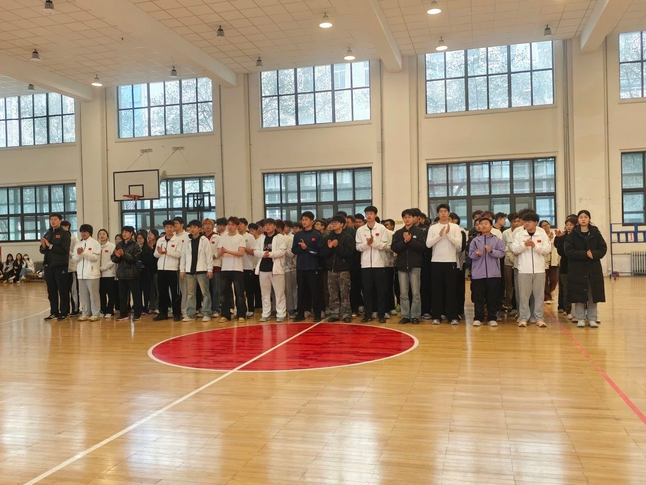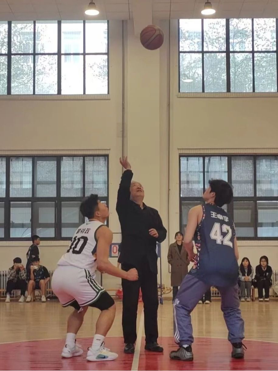体育新闻与传媒学院党委书记马增强和体育经济与管理学院党委书记陈鑫为本次“青春不落幕,篮球永不止”春季校园篮球联赛进行了开球仪式。