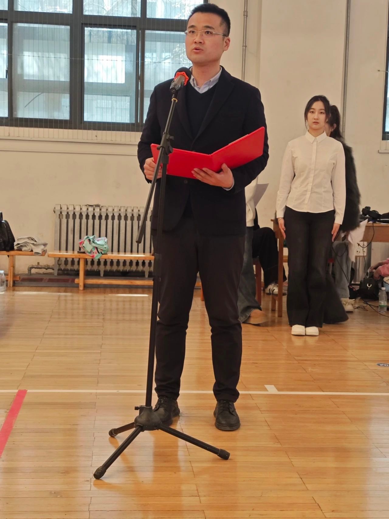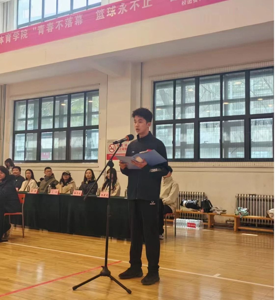 西安体育学院学工部部长兼校团委书记马国华致开幕词,他强调"青春不落幕,篮球永不止",这不仅是一句口号,更是体育精神的生动诠释。三院同心,其利断金!马书记指出三个学院用协作打破学科边界,用拼搏点燃青春激情,让篮球赛不仅是一场竞技的较量,更成为智慧、文化与团队精神的交融盛宴。这份凝聚力,正是西体人“追求卓越”的生动写照!希望全体运动员秉持"友谊第一,比赛第二"的宗旨,赛出风格、赛出水平!