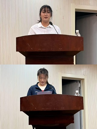 在经验分享环节,2021 级优秀实习生代表张烨驰同学结合自身实习经历,分享实习过程中遇到的挑战、收获与成长。2022 级学生代表杨佳欣同学进行表态发言,表达对实习生活的期待与决心,代表全体同学承诺将把握机会,努力提升专业技能。
