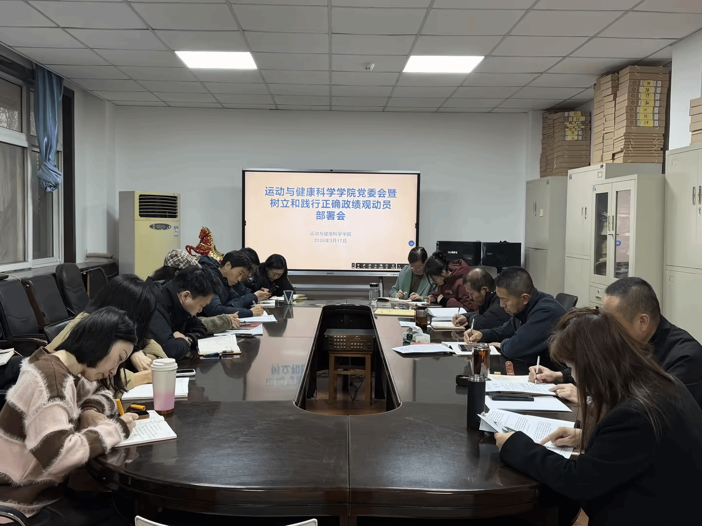 2026年3月17日上午,运动与健康科学学院召开学院党委会议暨树立和践行正确政绩观学习教育动员部署会,学院党委委员、各教研室主任、支部书记、科级以上干部、全体辅导员、教师代表、学生代表参加会议。会议由学院党委书记张鹏华主持。