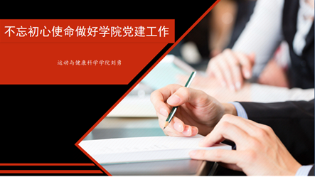202261日,运动与健康科学学院党委书记刘勇为学院全体党员讲党课,围绕“不忘初心使命做好学院党建工作”主题,结合习近平总书记关于教育系列讲话精神,从三个方面:一是高校党建和思想政治工作任重道远,二是高校党建和思想政治工作的任务,三是立德树人以及我院最近的工作,和全院党员干部交流学习感悟,谈了理解体会。