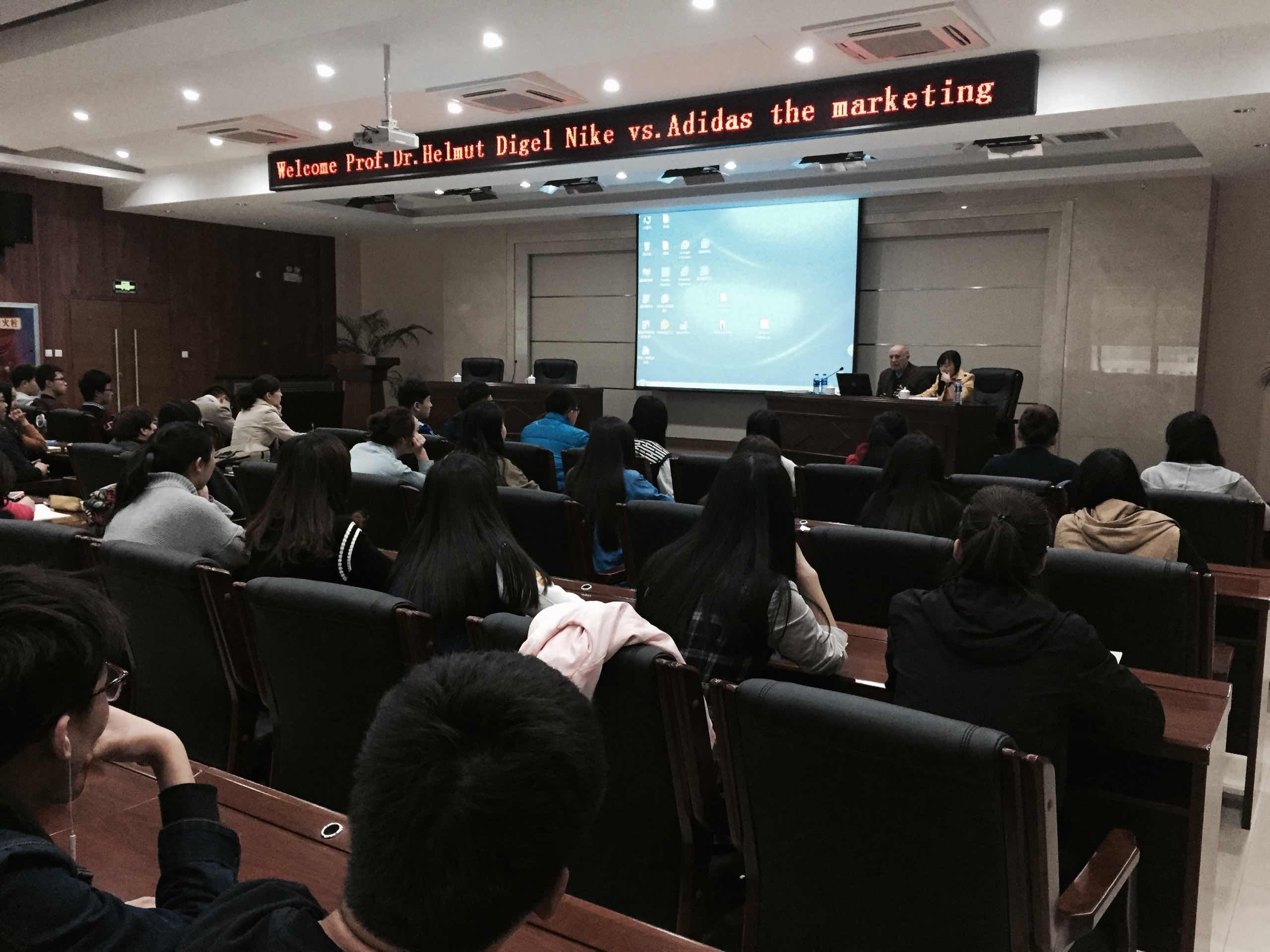 3月22日上午,Helmut Digel教授为我院体育经济与体育管理系师生代表和部门研究生进行题为《耐克和阿迪达斯的营销战略比较》的专题讲座。讲座由科研处处长李靖教授主持,副院长刘新民教授出席。