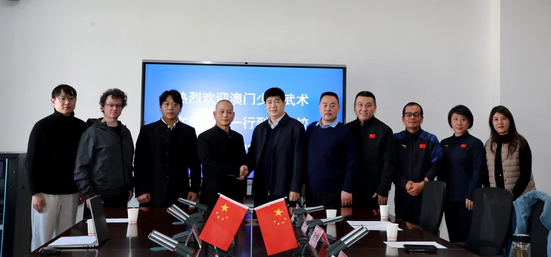 202618日,澳门少林武术文化协会会长曹文亭、理事长曹源一行莅临我校开展武术交流活动。我校副校长毕德鹏、武术学院院长袁金宝、套路教研室主任罗雪琳、马文国教授、国际交流与合作处全体人员共同参会。