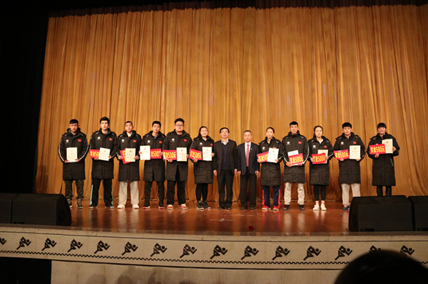 副院长陈彦同志宣读了学院对从本次奥林匹克竞赛月活动16个项目中推选出的48名同学进行表彰的决定,授予他们西安体育学院2016年度“奥林匹克之星”称号,并给予奖励。