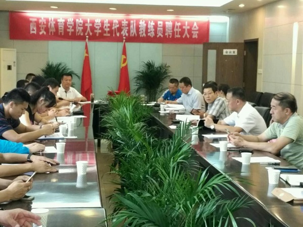 9月14日下午2点30分,我院在行政楼二楼会议室召开院大学生代表队教练员聘任大会。院长周里、副院长陈彦、学院大学生代表队竞训工作领导小组成员、相关教研室主任和新聘教练员参加了会议。