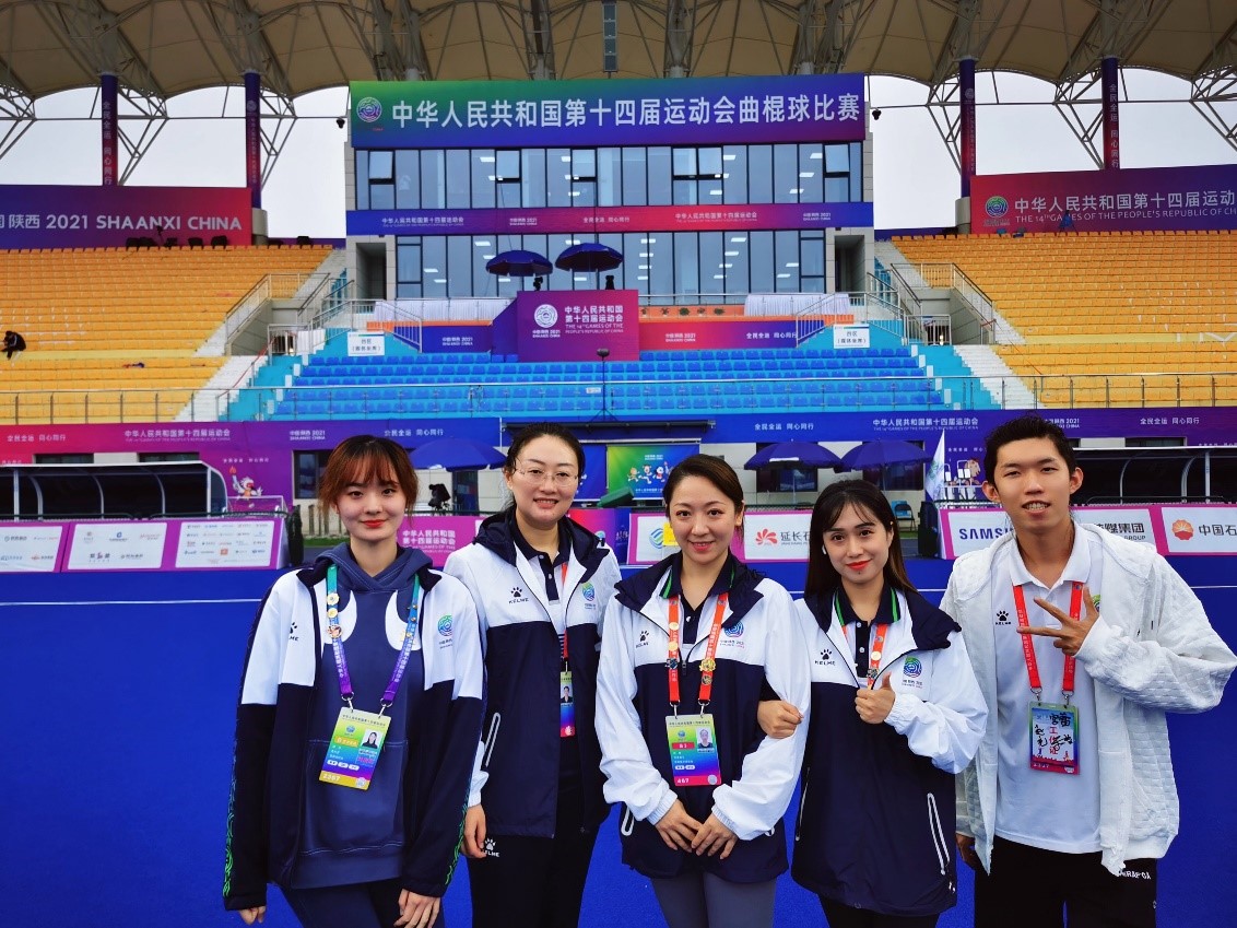 艺术学院师生在十四运各竞赛项中作为工作人员辛勤付出,为全运会的成果举办做出了贡献。缑荣涛在曲棍球竞委会场地环境处任处长,刘伟校大型活动部演出仪式处任副处长,闫晓在棒球、垒球竞委会体育展示颁奖处任处长;郭伟在全运村任联络员,用极强的专业素养、优质的后勤保障受到了全运村村民委员会的好评,并发来了感谢信;张艳、李晓梅、安建宇、张馨蕾等分别服务曲棍球、地掷球、棒球、手球、橄榄球等15个项目;赵静雯、车栋、宋姌等在十四运中作为演出学生和颁奖礼仪的带队老师日夜兼程,做好学生的保障工作。