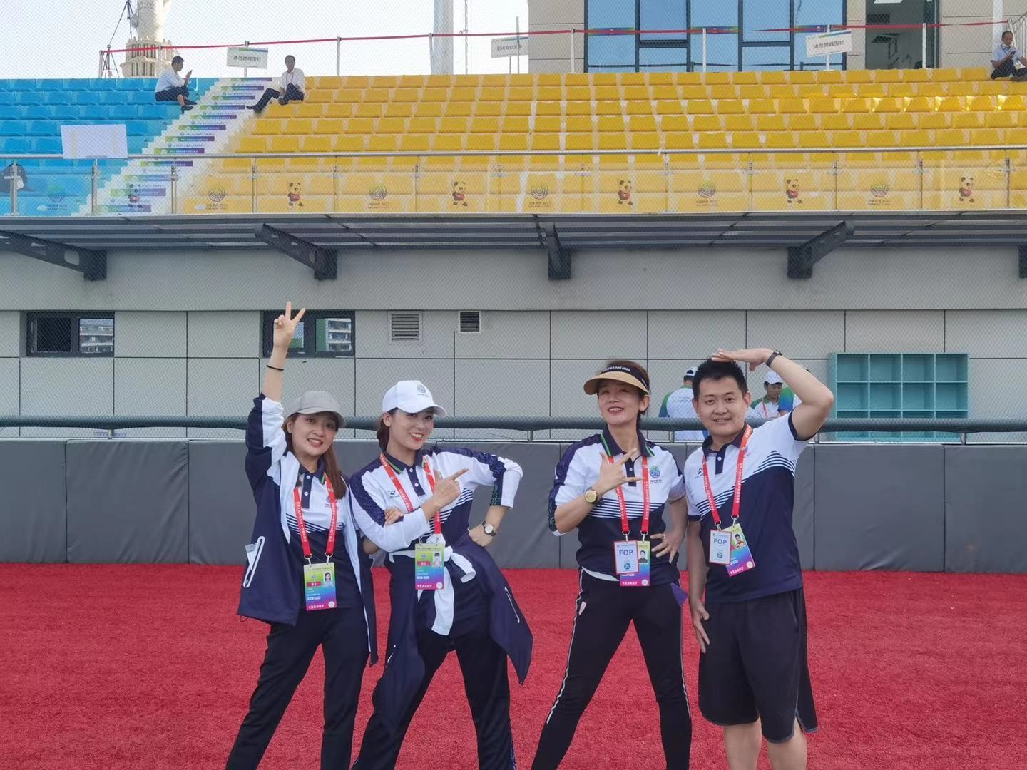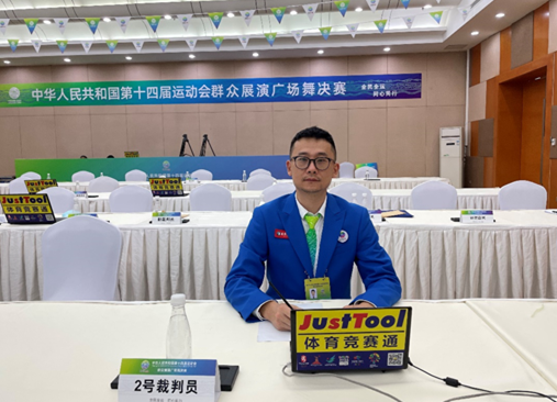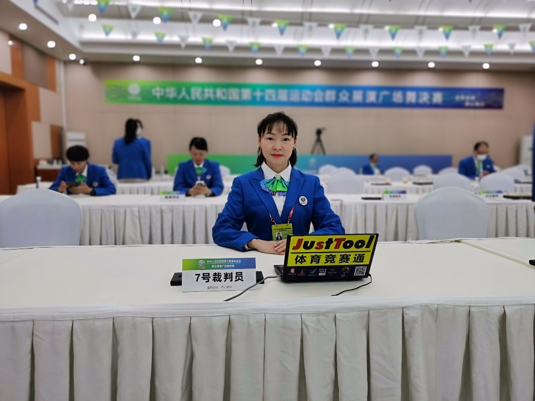 艺术学院老师恪尽职守,认真工作,以高水平执裁水平完成比赛项目。匡小红担任群众赛事展演广播体操项目副裁判长、杨占军担任裁判员。张敏、娄山、李思菲等人分别参与广场舞、健身秧歌、马术、艺术体操项目担任裁判。